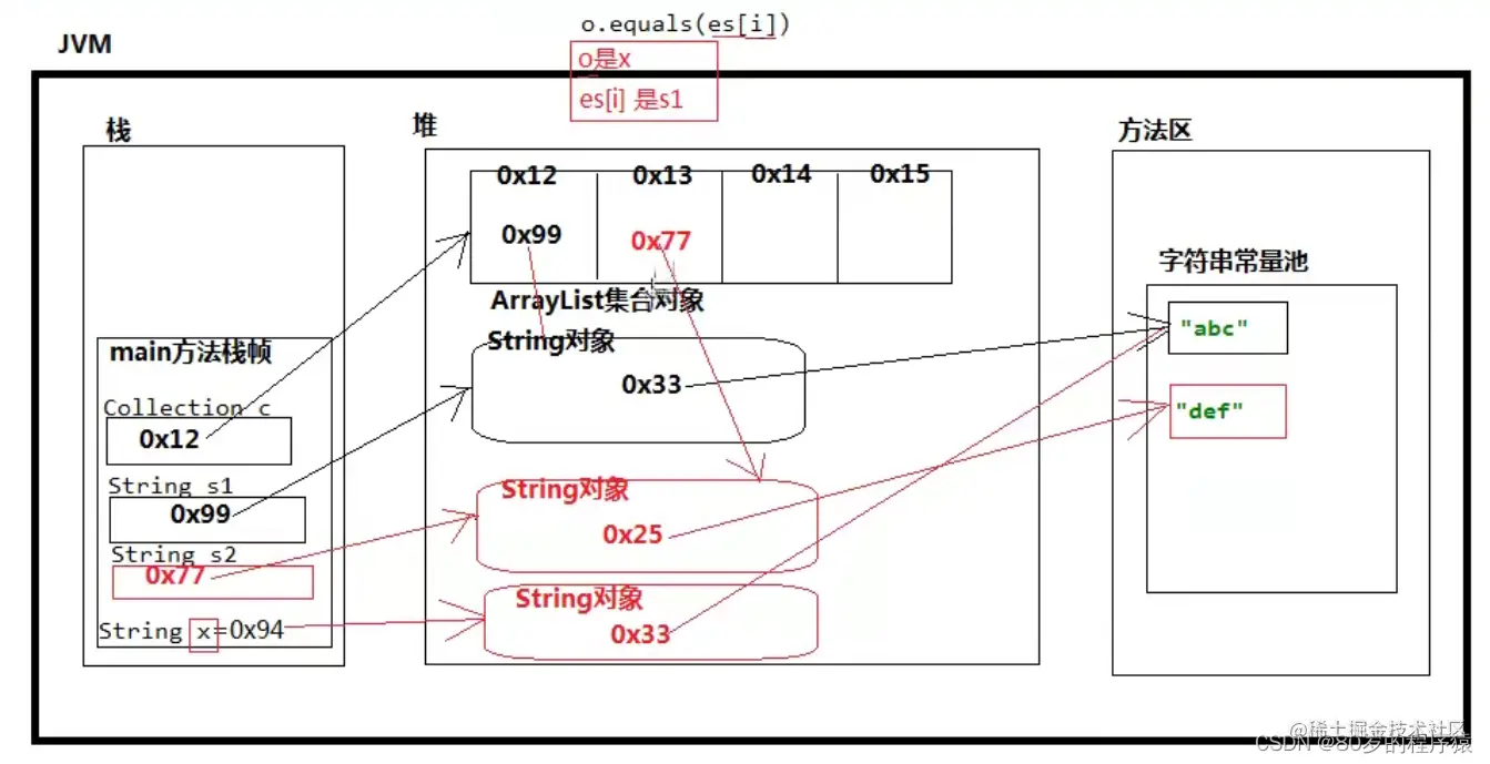 底层调用了equals方法进行比较,并且String重写了equals方法,如果不重写equals方法则会比较内存地址