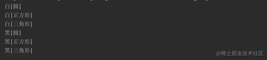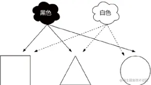 我们在调用黑色画笔类的绘图方法draw()后成功输出了“黑△”(黑色三角形)。同理,我们可以继续定义白色画笔类,画出“白△”(白色三角形)。然而,不管我们制造多少种颜色的画笔,都只能画出三角形,这是因为我们在抽象类里硬编码了对“△”的输出,这就造成了形状被牢牢地捆绑于各类彩色画笔中,对于其他形状的绘制则无能为力,使系统丧失了灵活性与可扩展性。
