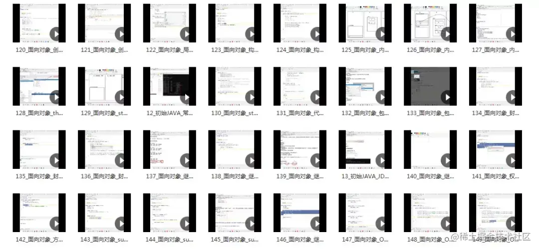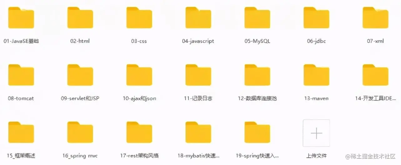 IDEA、Java语法、面向对象、异常、常用类、集合、IO流、多线程、网络编程、JUnit、枚举、注解、反射机制、CSS、HTML、JavaScript、JQuery、ajax、Javaweb、MySQL、JavaEE、SSM框架、springboot、算法、Git、maven、Linux、设计模式、多线程与高并发、视频教程、视频源码、实战项目、电子书、简历模板、高频面试题等等资源。