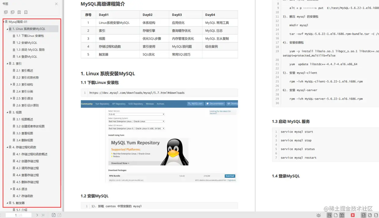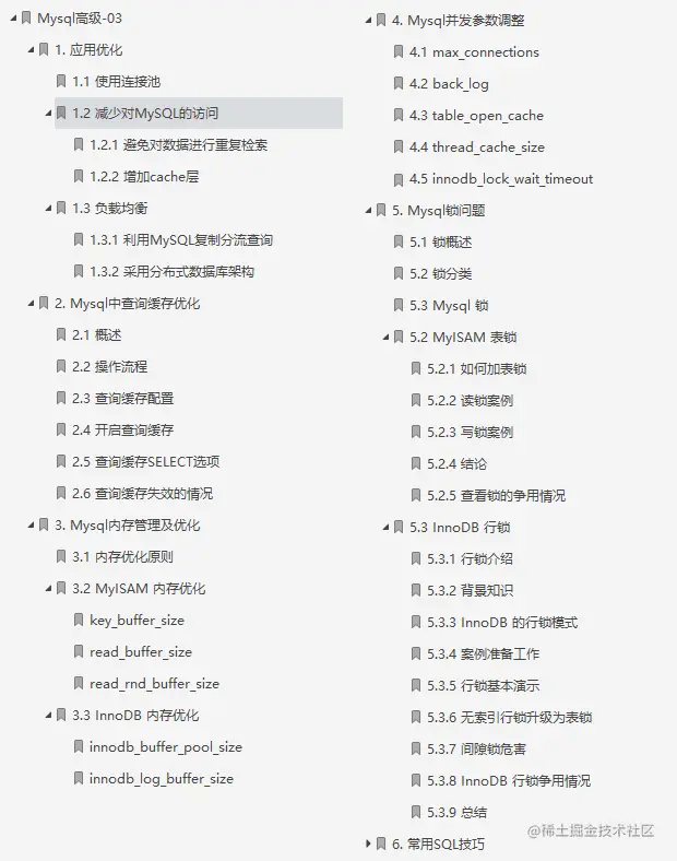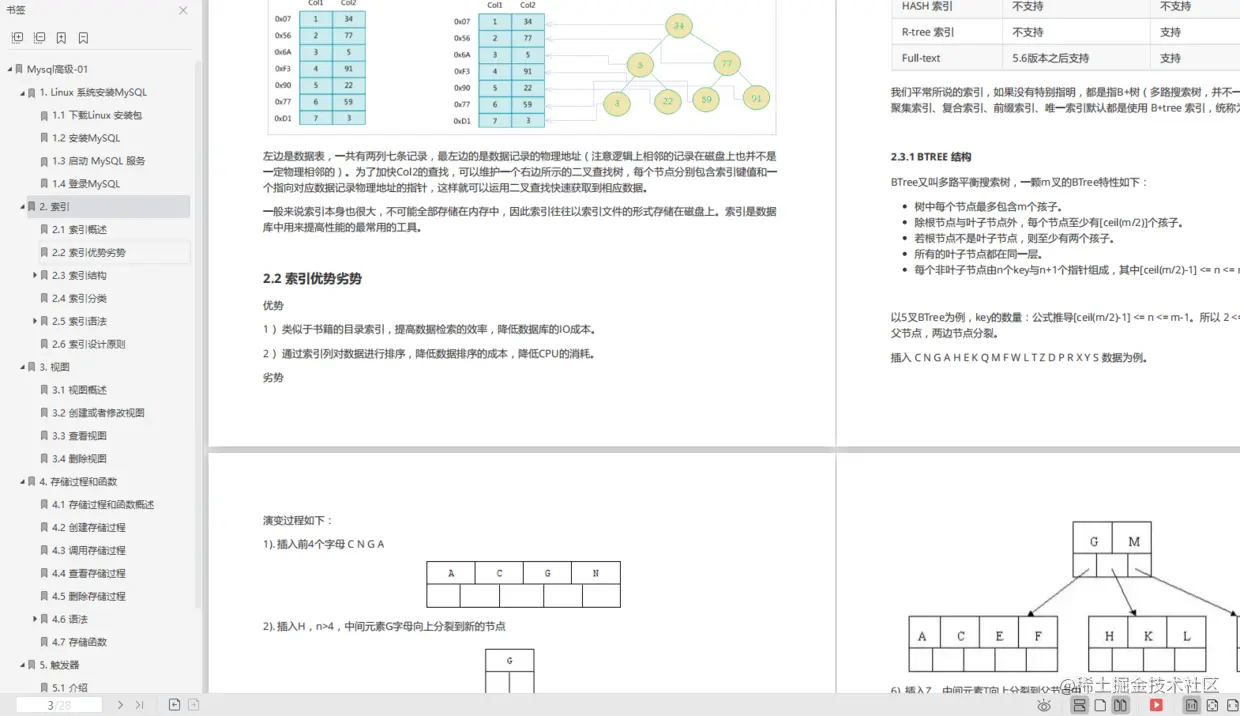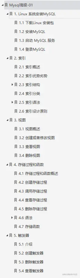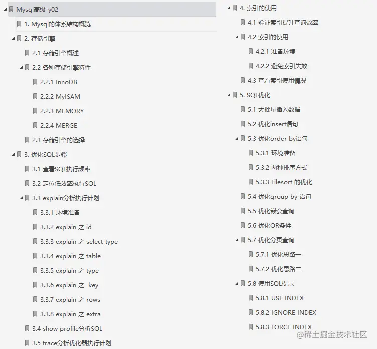 本笔记主要讲解了MySQL中的视图/存储过程/触发器/索引等对象的使用、常见的SQL语句优化的技巧、应用优化、数据库优化、数据库日志等方面的知识,并通过综合案例,对笔记中的知识进行一个整合应用。旨在通过MySQL高级部分内容,可以在满足现有业务需求基础上,对MySQL底层的体系结构, 对底层的优化有一个深入的理解 , 对系统的整体性能进行提升。