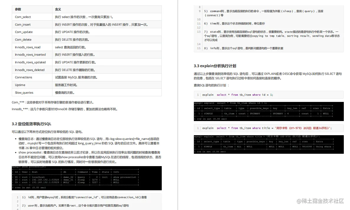 - 面试中提到的 “如何提高 MySQL 性能?”、“如何处理高并发数据?”这种工作中的高频问题,别说做了,连听都没有听过!