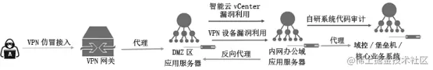前面讲到的通过安全服务提供商开展供应链攻击、获取第三方安 全运维服务的VPN账户口令的案例,也是一个典型的VPN仿冒接入的实 战攻防演练例子。
