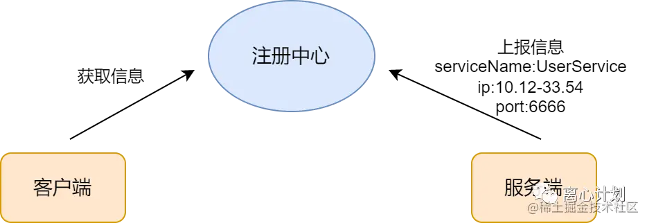 首先,客户端需要知道我们服务的地址,基本的TCP通信四元组(两对ip+端口)至少要知道吧,那问题来了,这个信息是如何知道的?服务端实现了UserService接口的getUserByName后,部署在服务端,服务端就需要把自己的ip地址与端口告诉就客户端才能进行通信,明眼人都知道,两端直接交换这个信息是不可能的,所以就需要一个 注册中心 来管理服务地址这个元信息