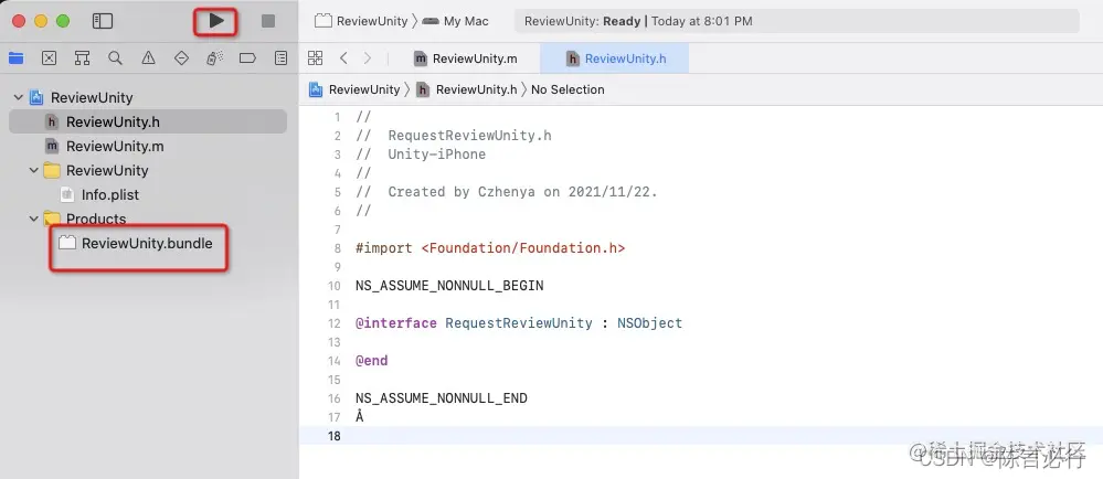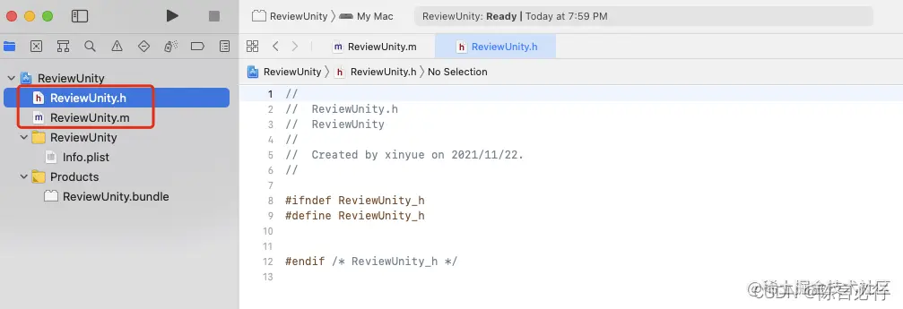 分别命名为ReviewUnity.h和ReviewUnity.m