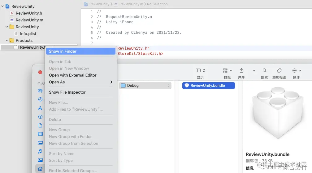 运行xCode,完成后就生成了.bundle库,将其直接导入到Unity中即可。