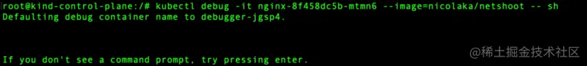 接下来我们创建第一个临时容器,使用nicolaka/netshoot作为新的临时容器的镜像,该镜像包含许多故障排除工具,如tcpdump和strace。