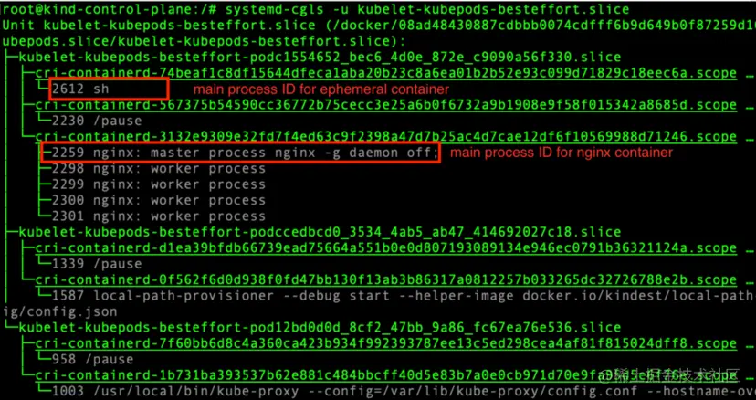 systemd-cgls -u kubelet-kubepods-besteffort.slice
