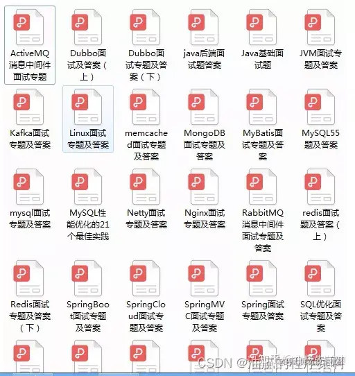 Redis、MySQL、Spring、Spring Boot、Spring Cloud、RabbitMQ、Kafka、Linux 等技术栈共有1000+道面试题。