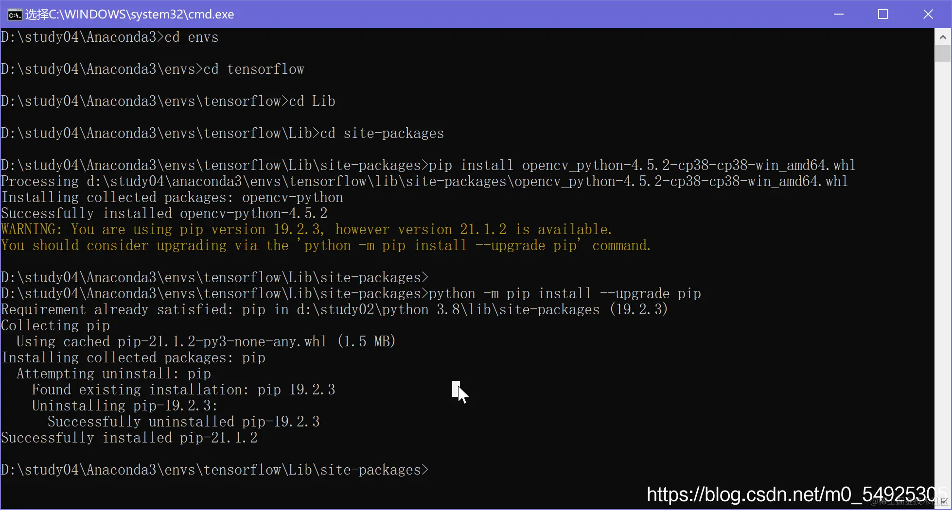进入D:\study04\Anaconda3\envs\tensorflow\Lib\site-packages下: