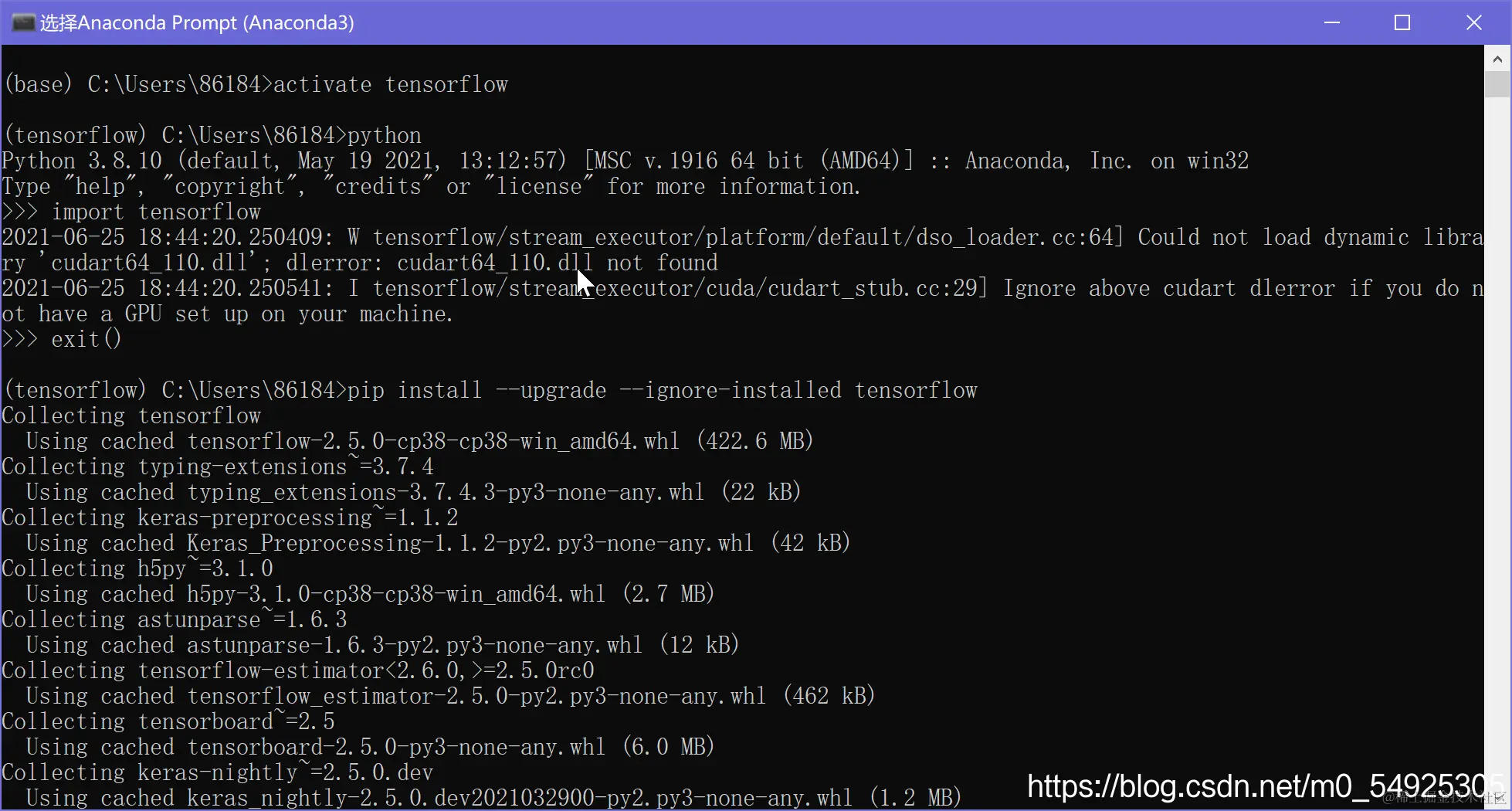 检查tensorflow安装环境(不是在cmd下是在Anaconda Prompt)