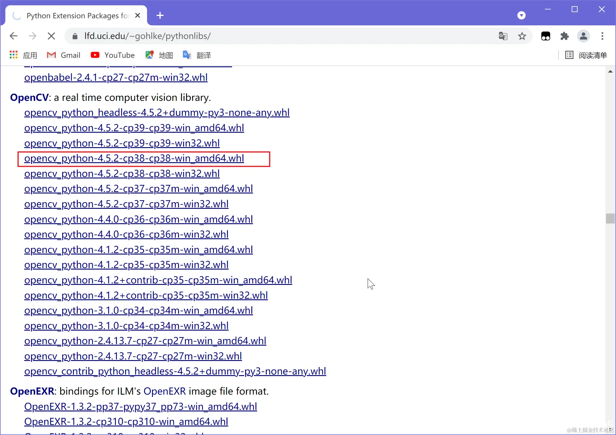六、下载opencv(版本一定要对应)谷歌链接www.lfd.uci.edu/~gohlke/pyt…