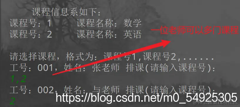 第十个方法(教师排课):实现这一功能需将课程,教师全部录入后,便可实现自由给老师排课的功能
