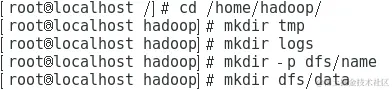 (1)在hadoop根目录下创建几个文件夹,如图所示。