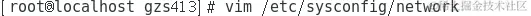 (1)第一台计算机执行命令“vim /etc/sysconfig/network”修改主机名,如图所示。