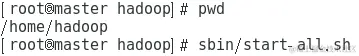 接下来即可启动Hadoop,在主机master上执行命令“sbin/start-all.sh”,启动进程,如图所示。