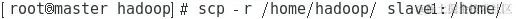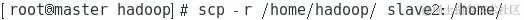 上述文件全部配置完成以后,需要把master节点上的/home/hadoop下的文件复制到各个Slave节点上,如图所示。