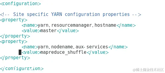 配置yarn-site.xml文件,如图所示。