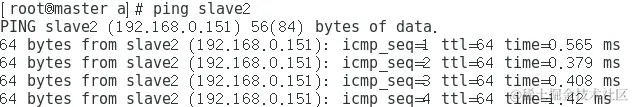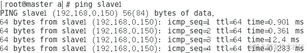 (5)测试集群中各个节点之间的互通性(这里使用“ping”命令进行测试),如图所示。