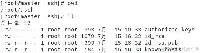 进入生成的密钥存储路径/root/.ssh查看生成的密钥文件。