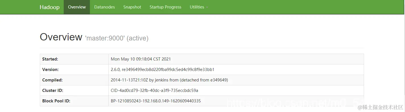 注意:如果在windows的浏览器中测试,需要保证该windows计算机可以正常访问到虚拟机中的相关计算机,并且需要修改windows计算机的hosts文件,实现master主机名与相应IP地址的映射,或者将“http://master:8088”中master修改为对应的IP地址进行测试。