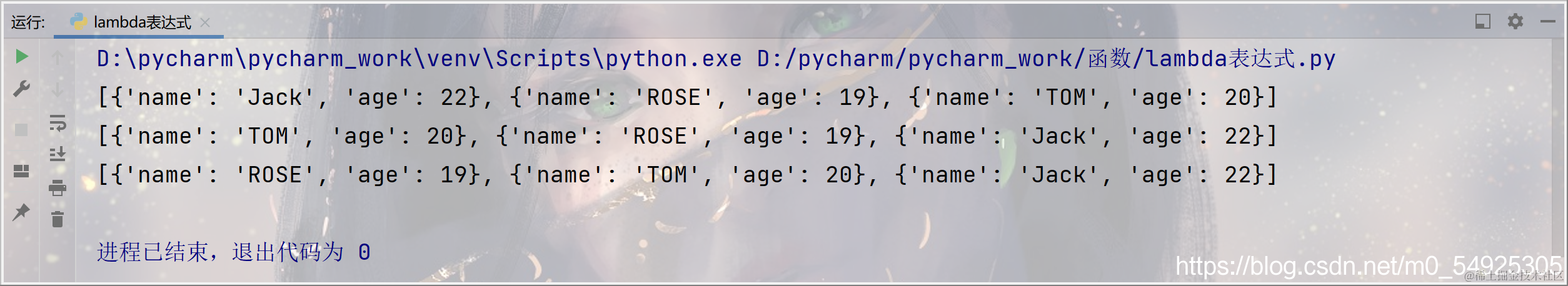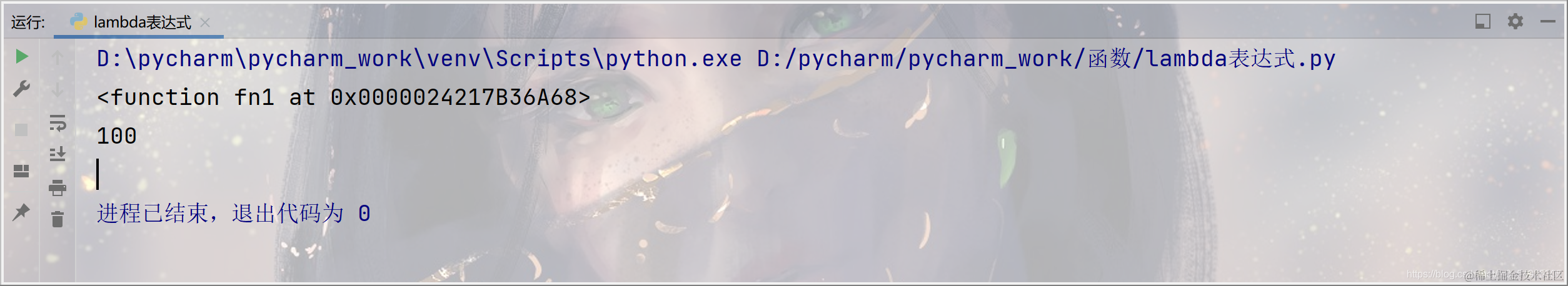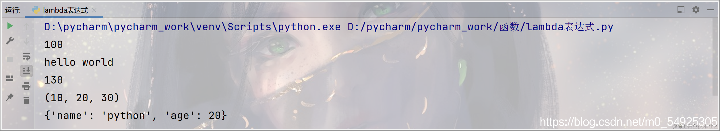 print(fn1(10, 20, 30)) # => 注:这里的可变参数传入到lambda之后,返回值为元组。