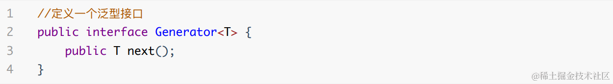 一般泛型接口常用于生成器(generator) 中,生成器相当于对象工厂,是一种专门用来创建对象的类。