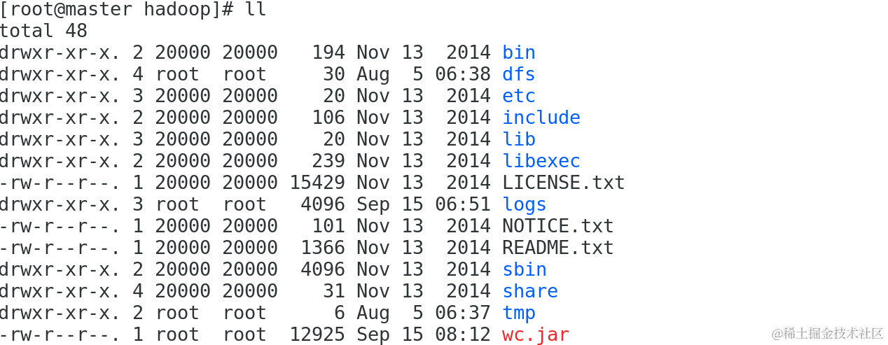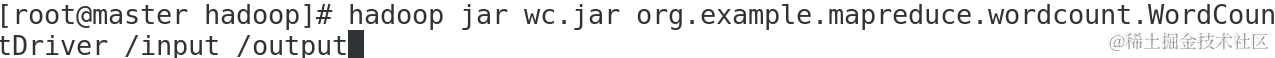 注:使用hadoop jar 命令 + (jar包在当前目录下无需加路径)jar包名 + 全驱动类名 + 输入路径 + 输出路径 #此处jar包根据自身实际情况进行修改