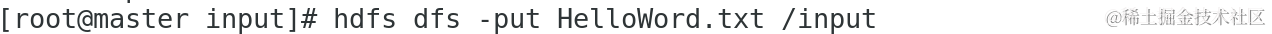 (3)将上传到虚拟机/input目录下的HelloWord.txt上传到HDFS上: