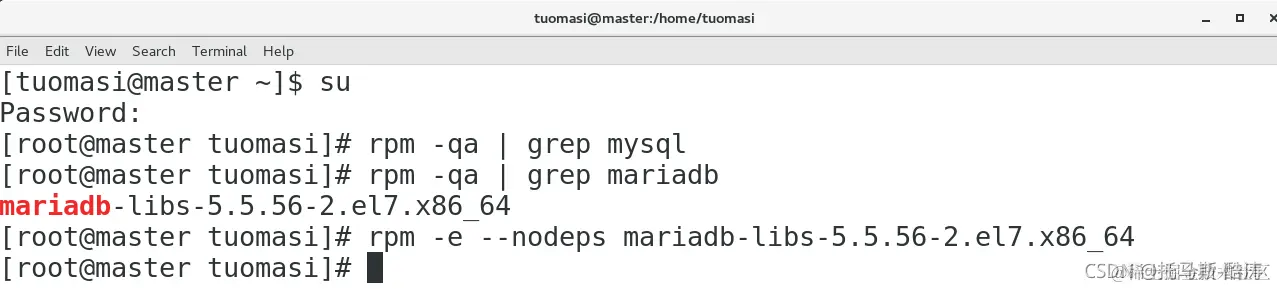 2、查看是否安装mariadb: