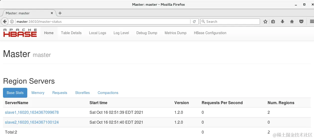 4、通过web ui 查看HBase: