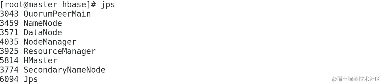 2、启动hbase集群: