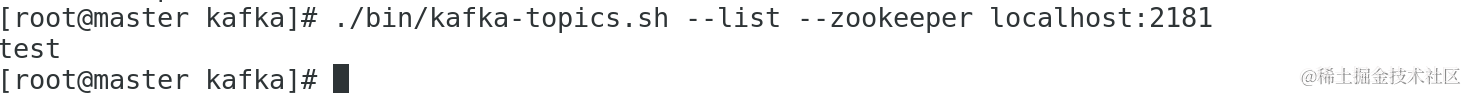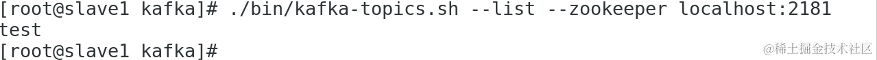 2、在master,slave1,slave2上查看已创建的topic列表 test: