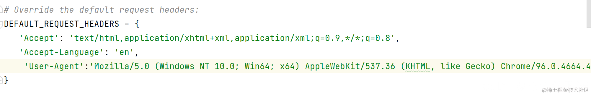 2、将DEFAULT_REQUEST_HEADERS方法注释掉,并在其中添加User-Agent属性,代码如下