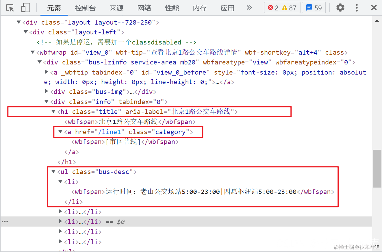 注:这将会爬取到list1标签内所有路信息,其中包括公交路线,市区普线,运行时间这些字段,其余字段可以自行添加。