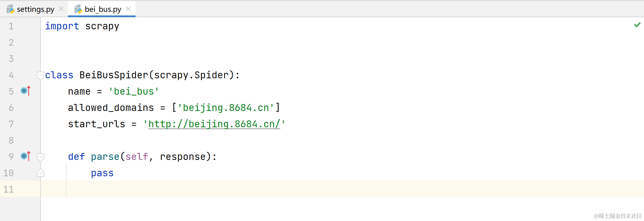 3、进入bei_bus.py文件,对start_urls进行修改,代码如下图