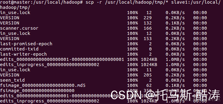 scp -r /usr/local/hadoop/tmp/* slave1:/usr/local/hadoop/tmp/
