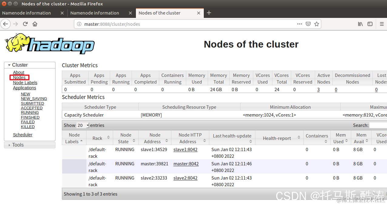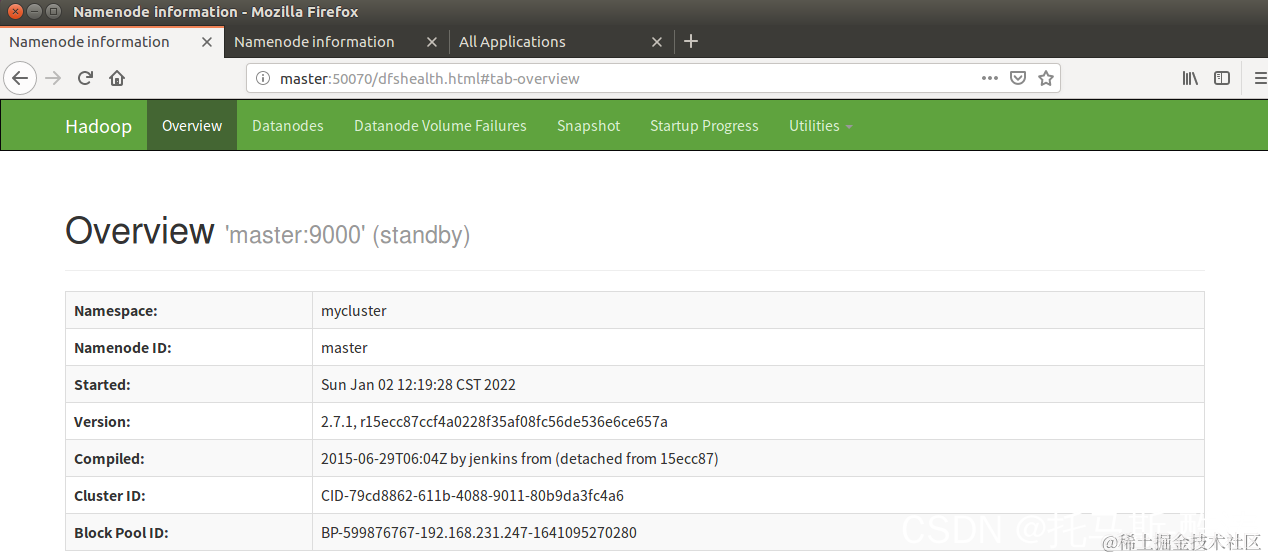 17、访问 resourcemanager 和 namenode 的web页面