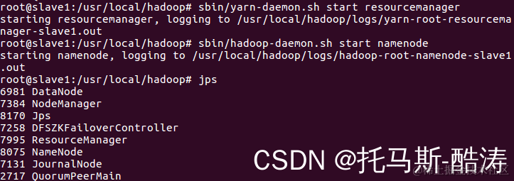 16、启动slave1的resourcemanager 和 namenode 进程