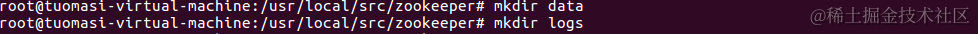 mv zookeeper-3.4.8 zookeeper在zookeeper安装目录下创建 logs 目录和 data 目录