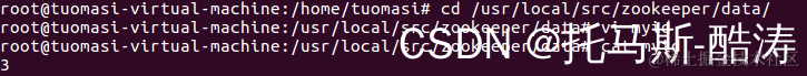 6、修改其他两台机器zookeeper/data/myid文件分别为2和3