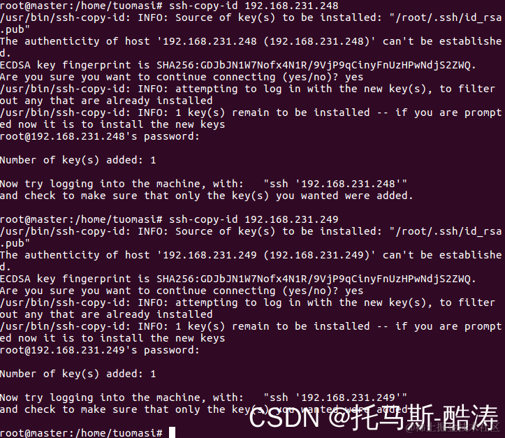 ssh-copy-id 192.168.231.248 ssh-copy-id 192.168.231.249