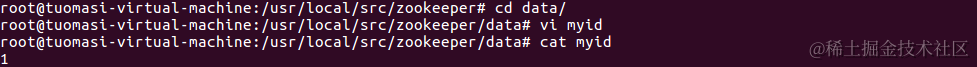 在data目录下创建myid文件并写入内容 “1”