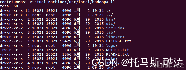 tar -zxvf hadoop-2.7.1.tar.gz -C /usr/local/重命名其名称为hadoop