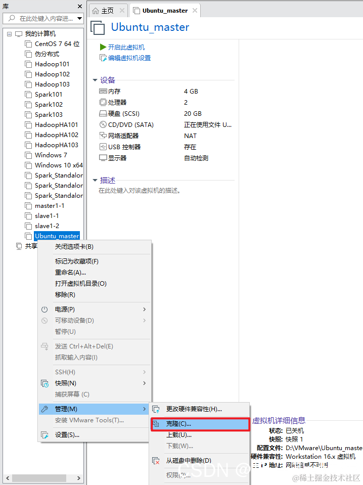 1、关机状态下克隆出另外两台虚拟机