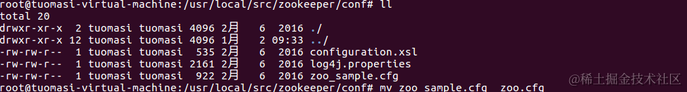 进入zookeeper/conf目录下,重命名 zoo_sample.cfg 为 zoo.cfg