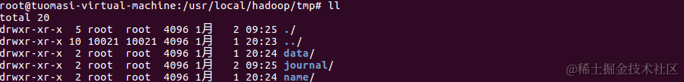 在tmp目录下创建 data 和 name 和 journal 目录