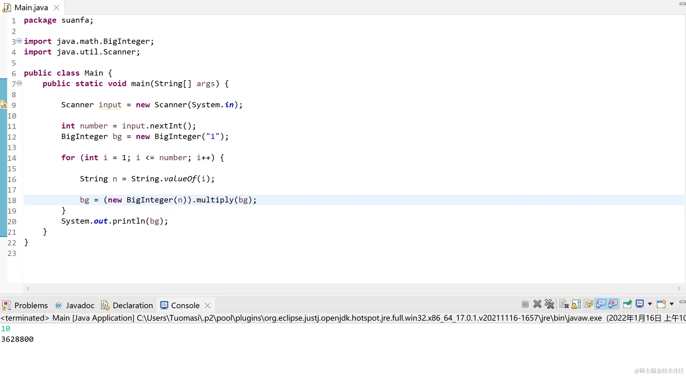首先将a设为1,然后乘2,乘3,当乘到n时,即得到了n!的值。输入包含一个正整数n,n<=1000。