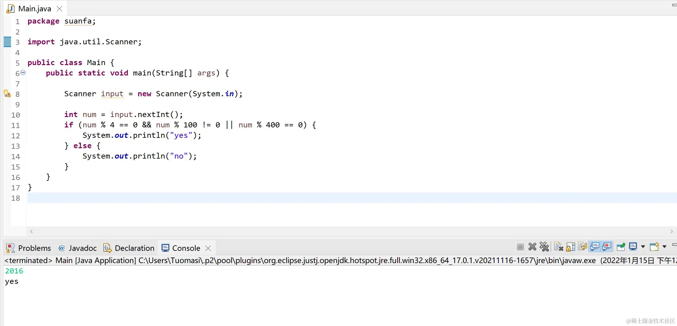 输出一行,如果给定的年份是闰年,则输出yes,否则输出no。
