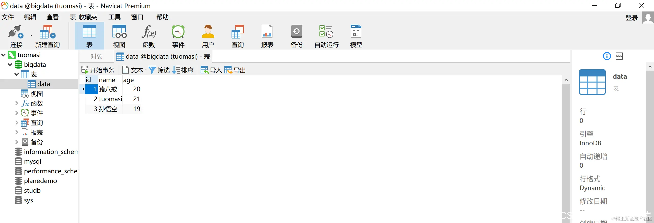 val mapRow: ResultSet => (Int, String, Int) = (r: ResultSet) => { val id: Int = r.getInt("id") val name: String = r.getString("name") val age: Int = r.getInt("age") (id, name, age) }11、遍历打印数据
