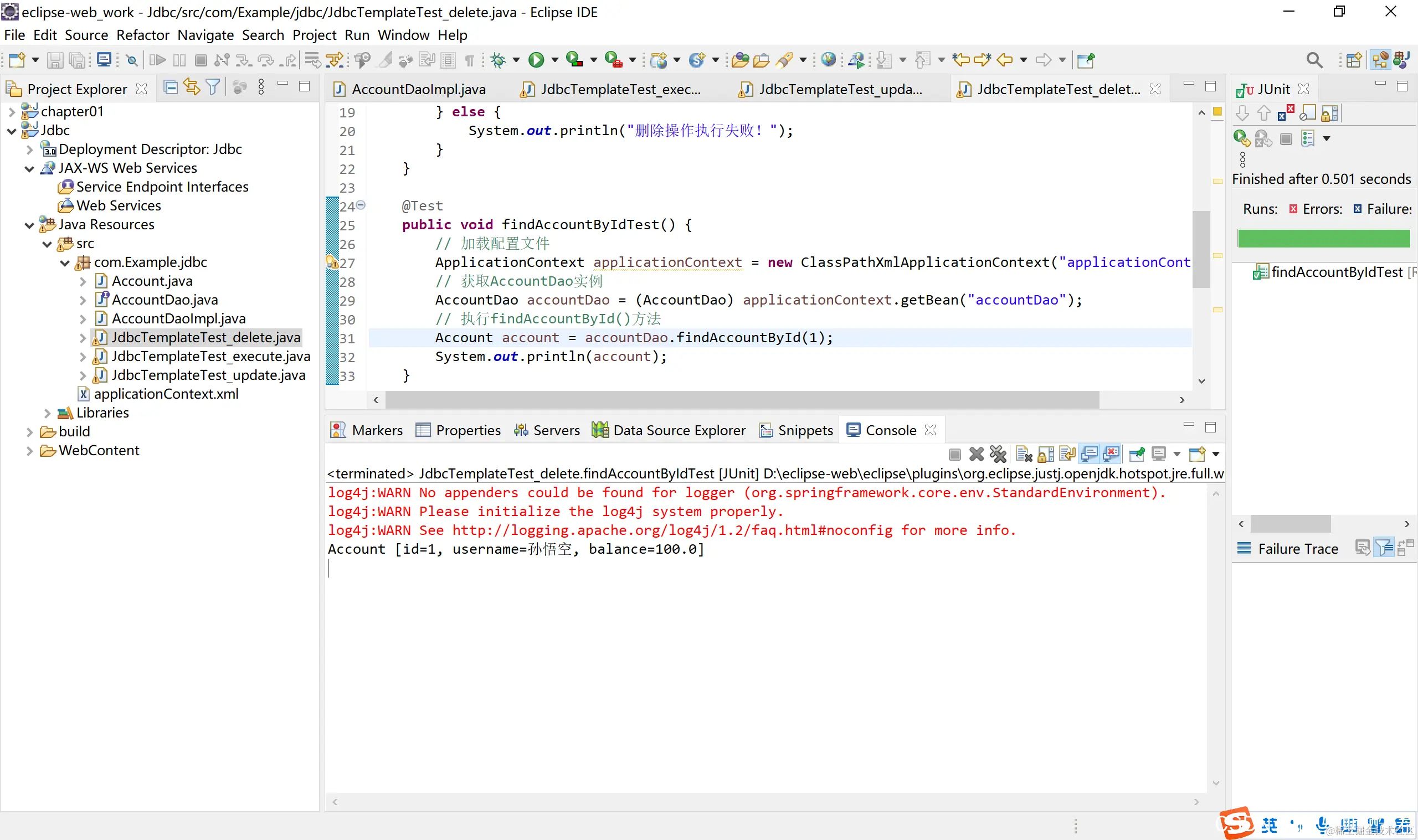 AccountDao accountDao = (AccountDao) applicationContext.getBean("accountDao");